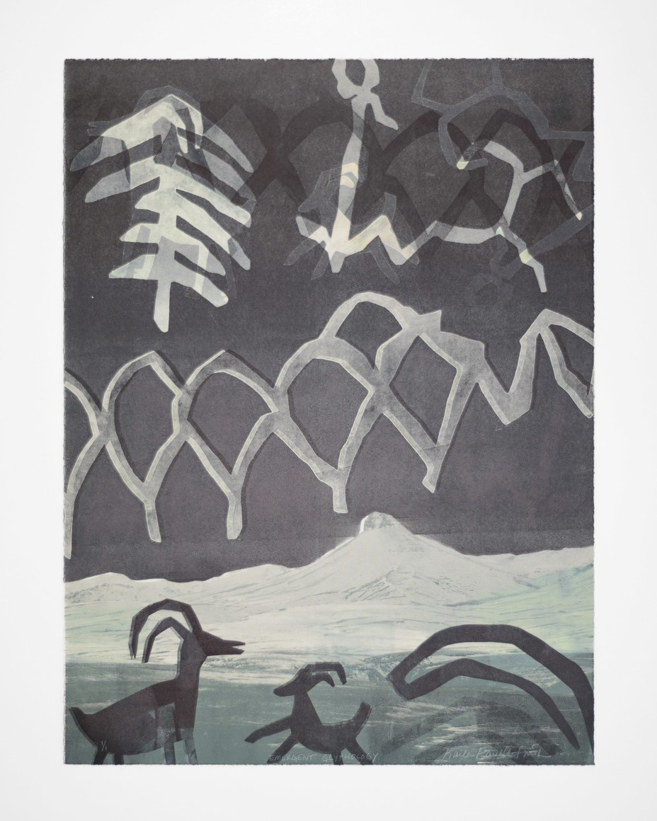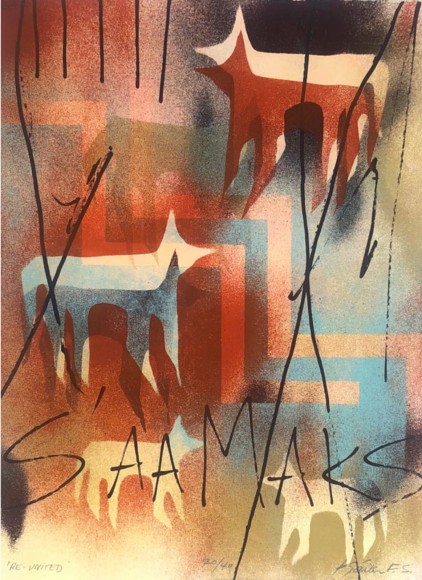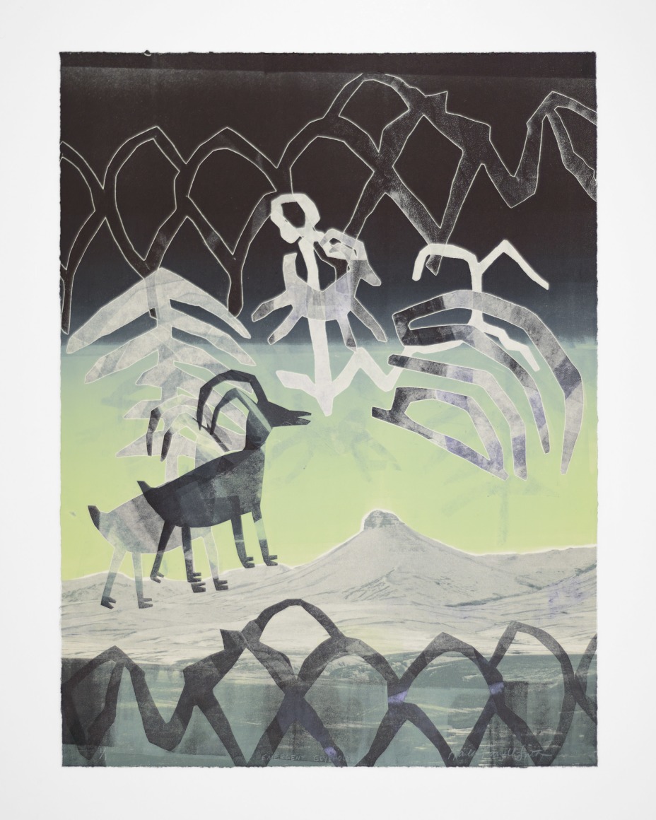 Her work has been exhibited at Out of Sight, Museum of Northwest Art, Tacoma Art Museum, WA; Missoula Art Museum, MT and Medici Fortress, Cortona, Italy; and in Oregon she has work in the permanent collection of the Jordan Schnitzer Museum of Art, Portland Art Museum and the Portland Building. Her solo exhibition LAND BACK was on view at the Goudi'ni Native American Art Galleries at Cal Poly Humboldt in Arcata, CA, Spring of 2023. Her work was curated in the exhibition Inherent Memory at the IAIA MoCNA in Santa Fe, NM 2023. Many Wests: Artists Shape an American Idea is at The Boise Art Museum, The Utah Museum of Fine Arts, Jordan Schnitzer Museum of Art, the Whatcom Museum, and the Smithsonian American Art Museum through 2023. The Land Carries Our Ancestors: Contemporary Art by Native Americans is curated by Jaune Quick-to-See Smith and will be on view at The National Gallery of Art, Washington DC through 2023 and traveling to the New Britain Museum of Art in Connecticut through 2024.