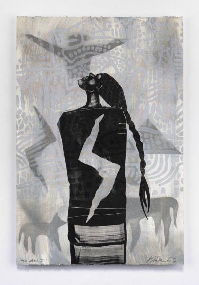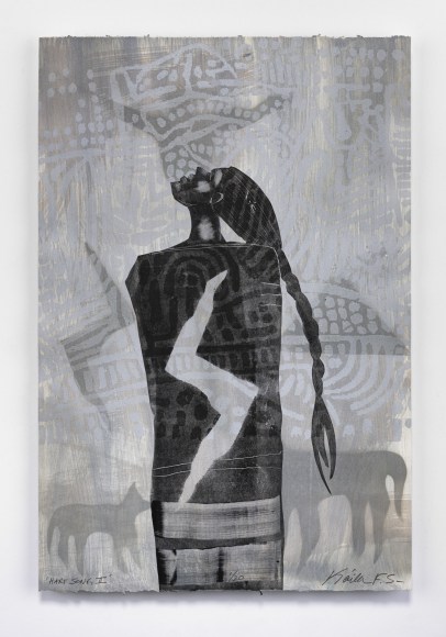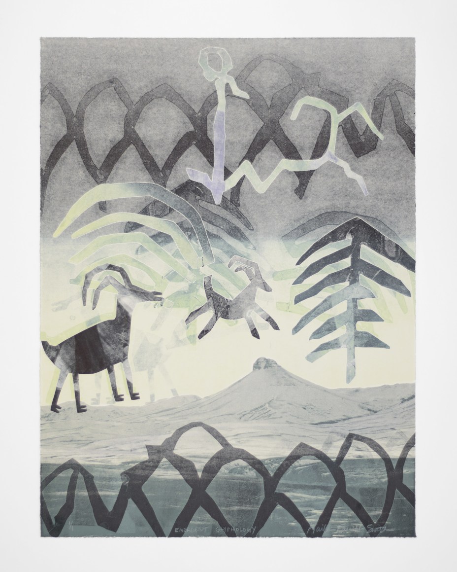 Ka'ila Farrell-Smith (b. 1982) is a contemporary Klamath Modoc visual artist, writer and activist based in Modoc Point, Oregon. The conceptual framework of her practice focuses on channeling research through a creative flow of experimentation and artistic playfulness rooted in Indigenous aesthetics and abstract formalism. Utilizing painting with wild harvested pigments and stenciling found metal detritus, her work explores space in-between indigenous and western paradigms.