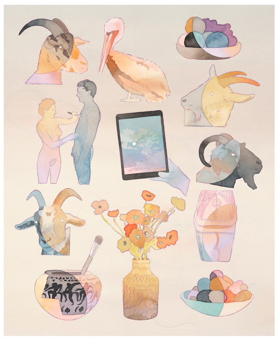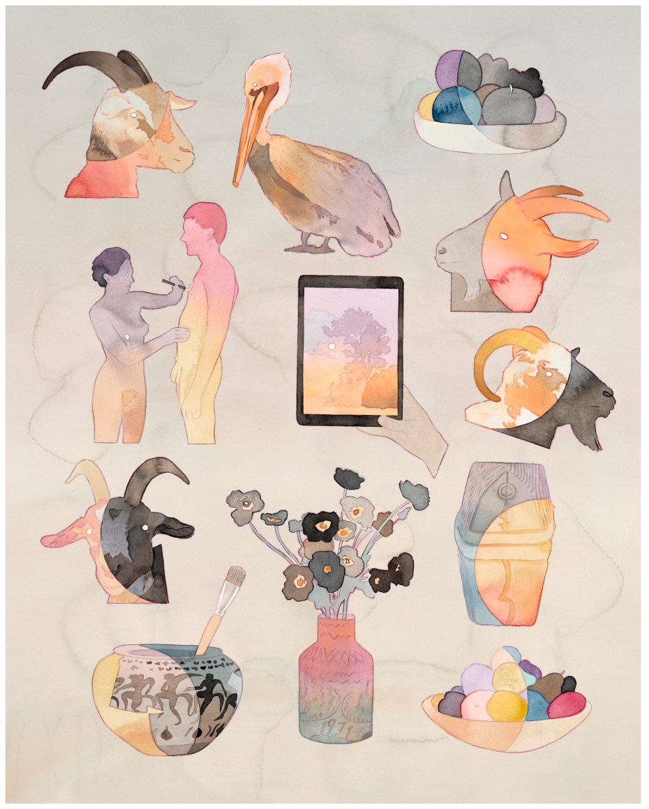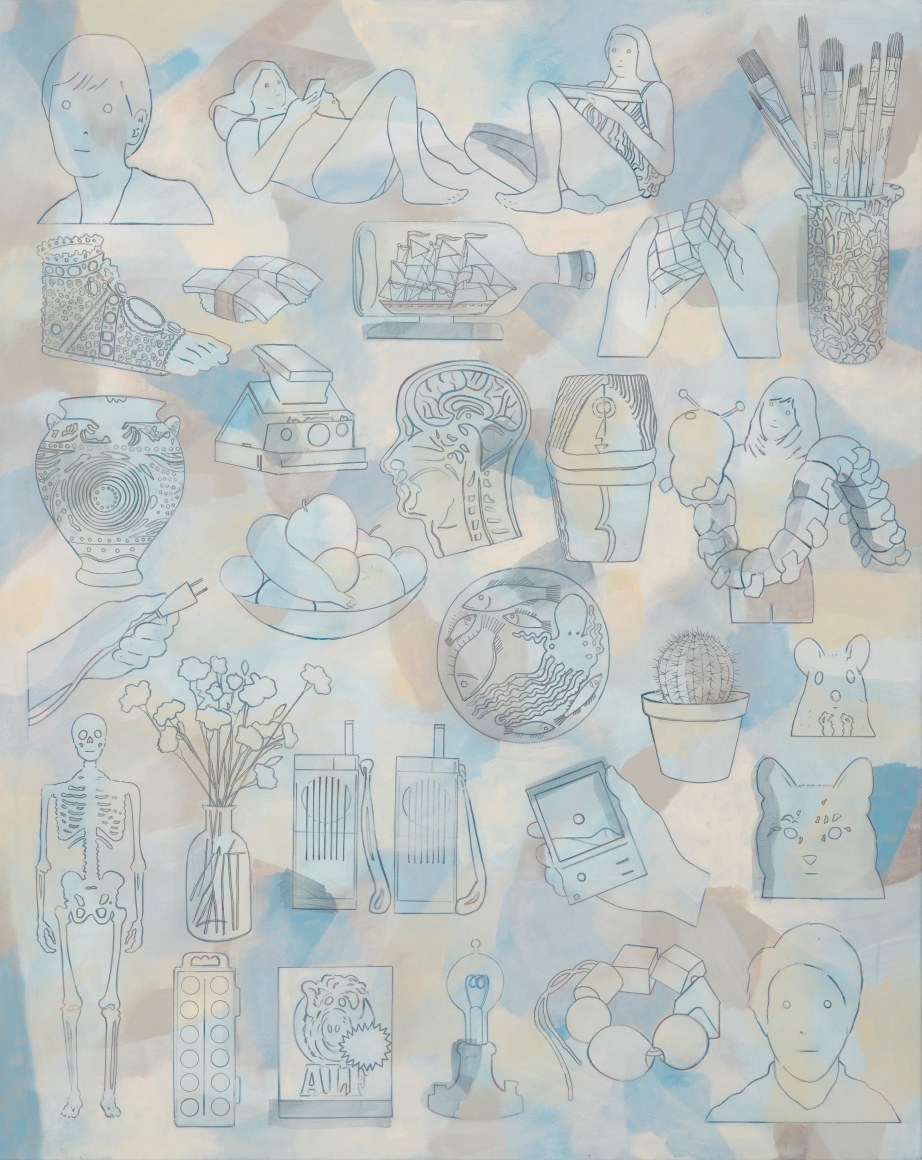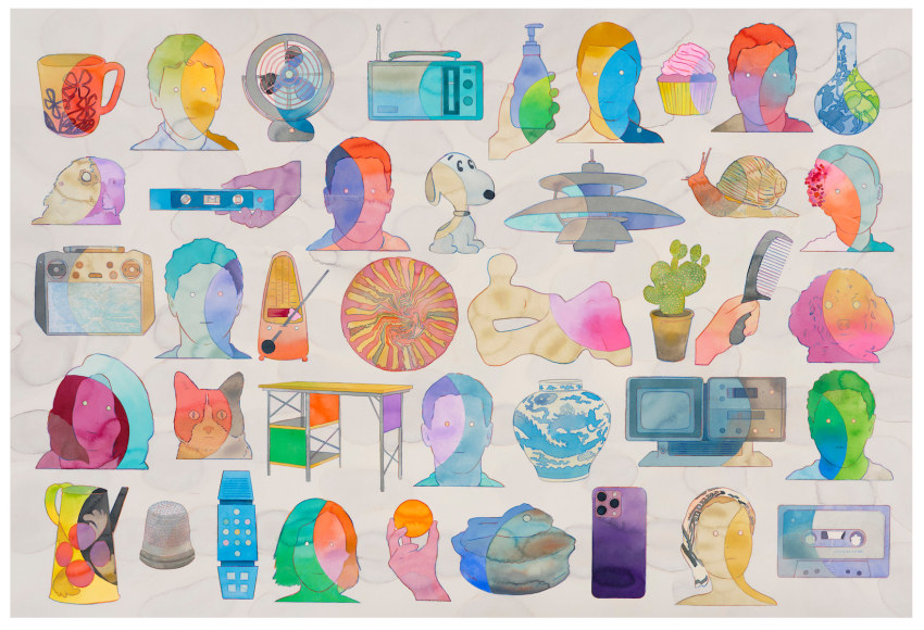 For the month of June, Russo Lee Gallery exhibits Bounty by Dan Gluibizzi. For this exhibition, Gluibizzi blends kitsch and whimsy to create drawings and paintings of everyday objects found throughout our digital lives. Drawn from the abundance of images observed in the worlds we scroll, swipe, and inhabit, the artist creates grids, groupings, and arrangements that are akin to an eccentric cabinet of curiosities. This body of work invites the viewer to consider the relationships between the virtual and physical worlds we inhabit, and the way our experiences are shaped by the constant flow of images and information that surrounds our lives.