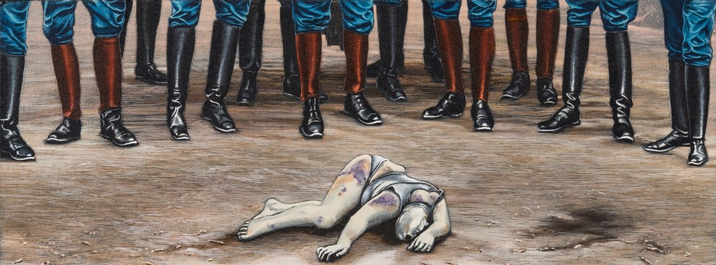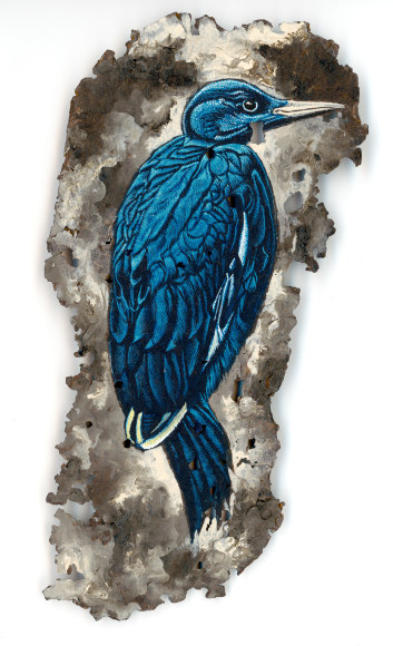 For the month of August, Russo Lee Gallery presents an exhibition of new work by Eric Stotik. With meticulous execution, Stotik continues to create paintings with intense visual impact. This body of work is composed of acrylic on paper, wood panel, and found metals. Bordering on the dark and mysterious, each piece evokes pathos, often examining where nature, man, and culture collide.