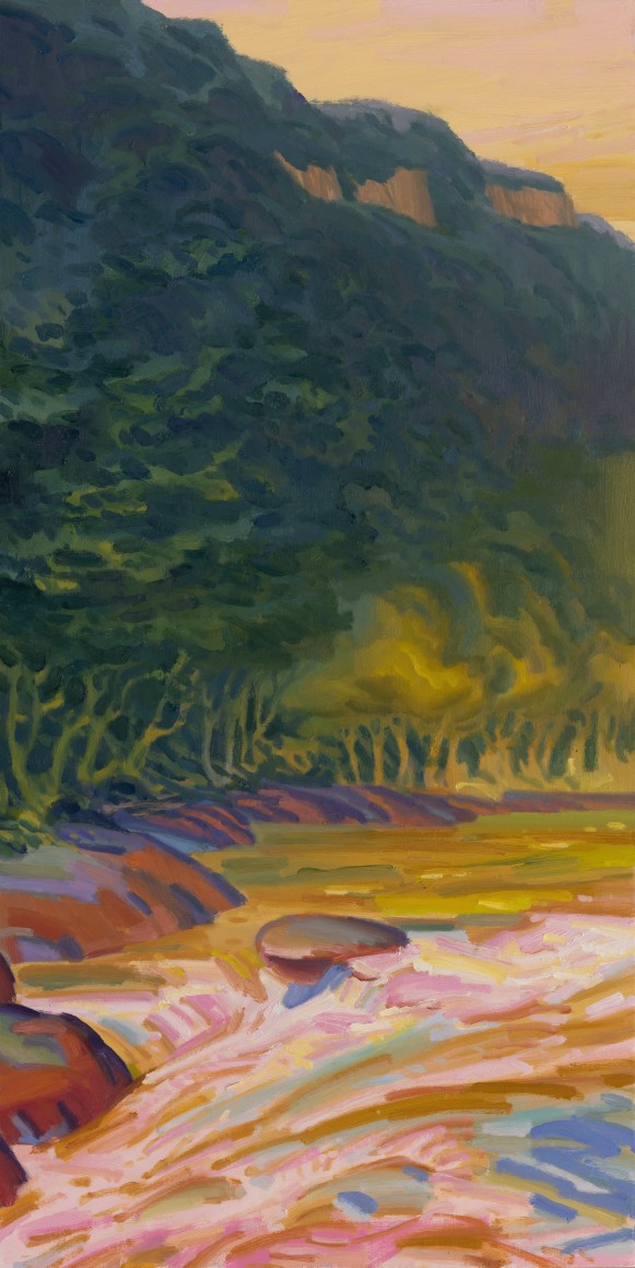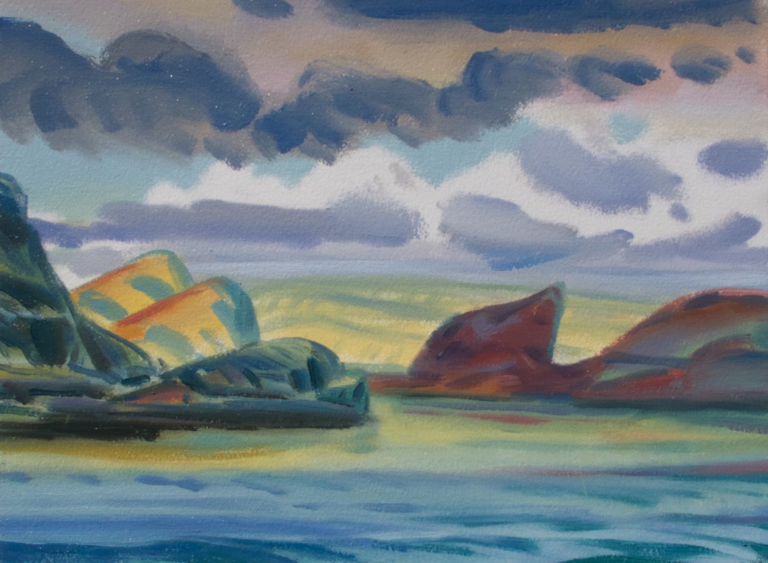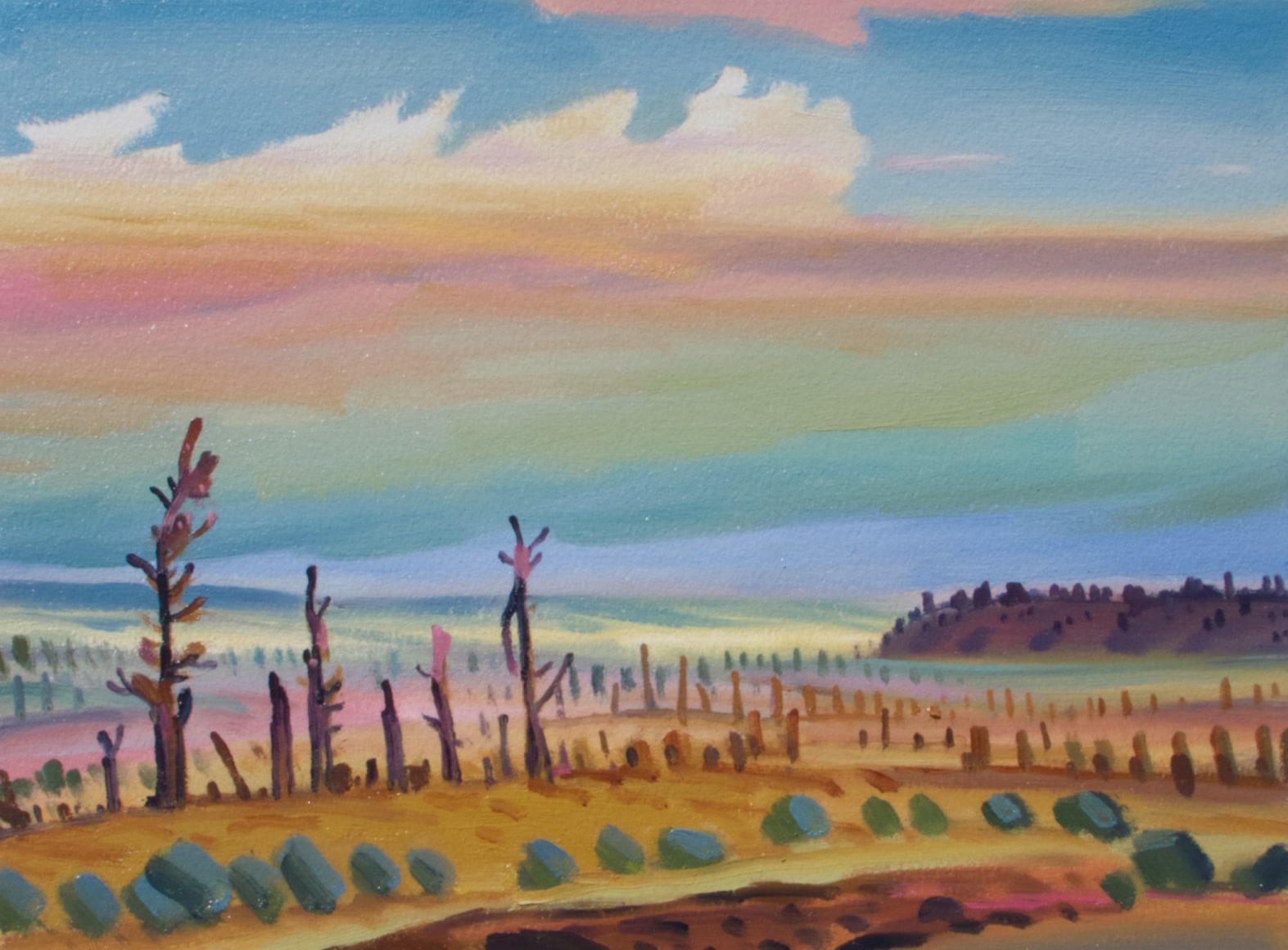 For the month of October, Russo Lee Gallery exhibits Overlands by invited artist Gabriel Liston. During a 2022 railway trip across the country, Liston describes staring out the window and drawing. He kept his watercolors open and painted a handful of the penciled pages while still on the train. The body of work for this exhibition is based on the notebook sketches made during that time.