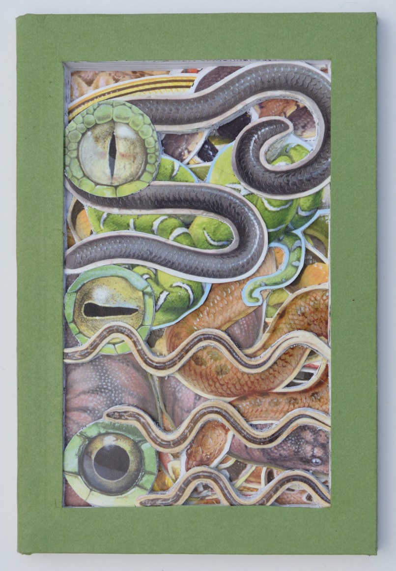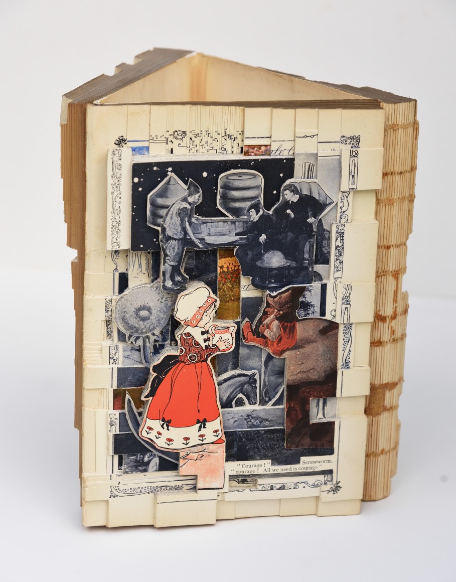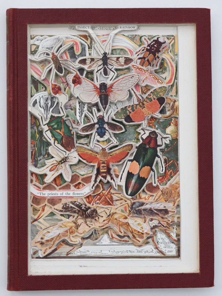 Russo Lee Gallery is pleased to present Human / Nature by James Allen. This body of work contemplates the intersection of humanity, the natural world, and the chaos that surrounds us. Allen uses books as a medium to create sculptural works of art. His book excavations reveal new combinations of images, and his collage work makes use of the cutaway pages from the book excavations alongside other found images. Some of the works in this exhibition dwell on the human sphere, while others display the beauty and diversity of nature. Allen states that “we face the challenge of balancing our desire to dominate our surroundings with the need to maintain the balance that makes all life on earth possible.”