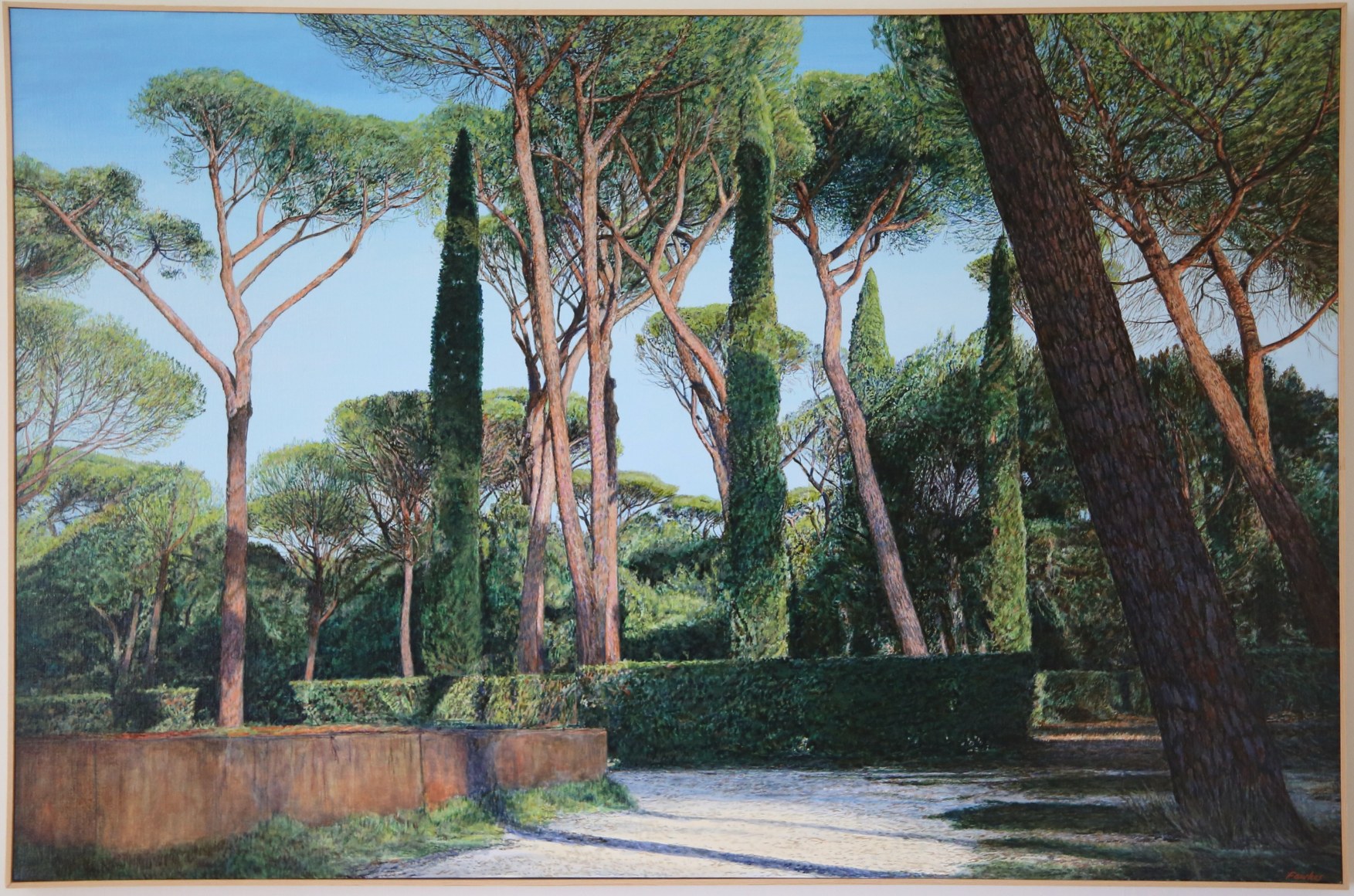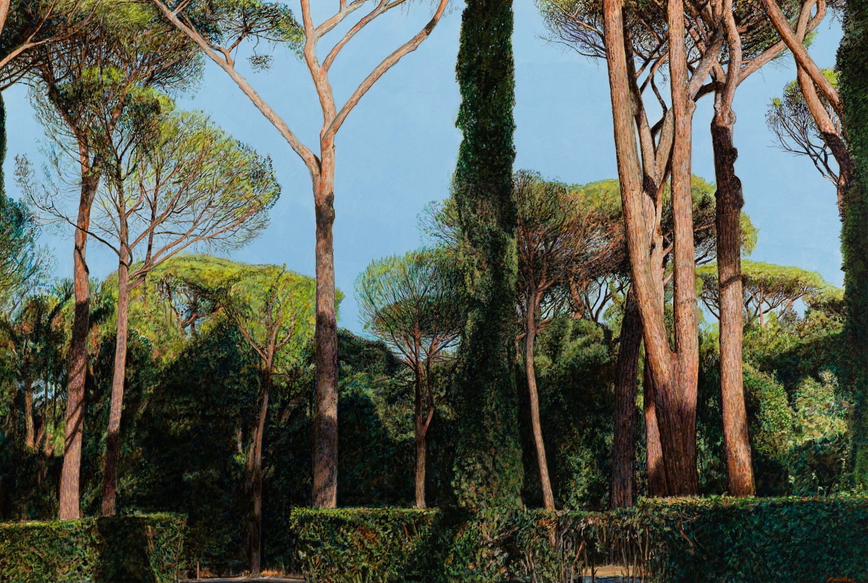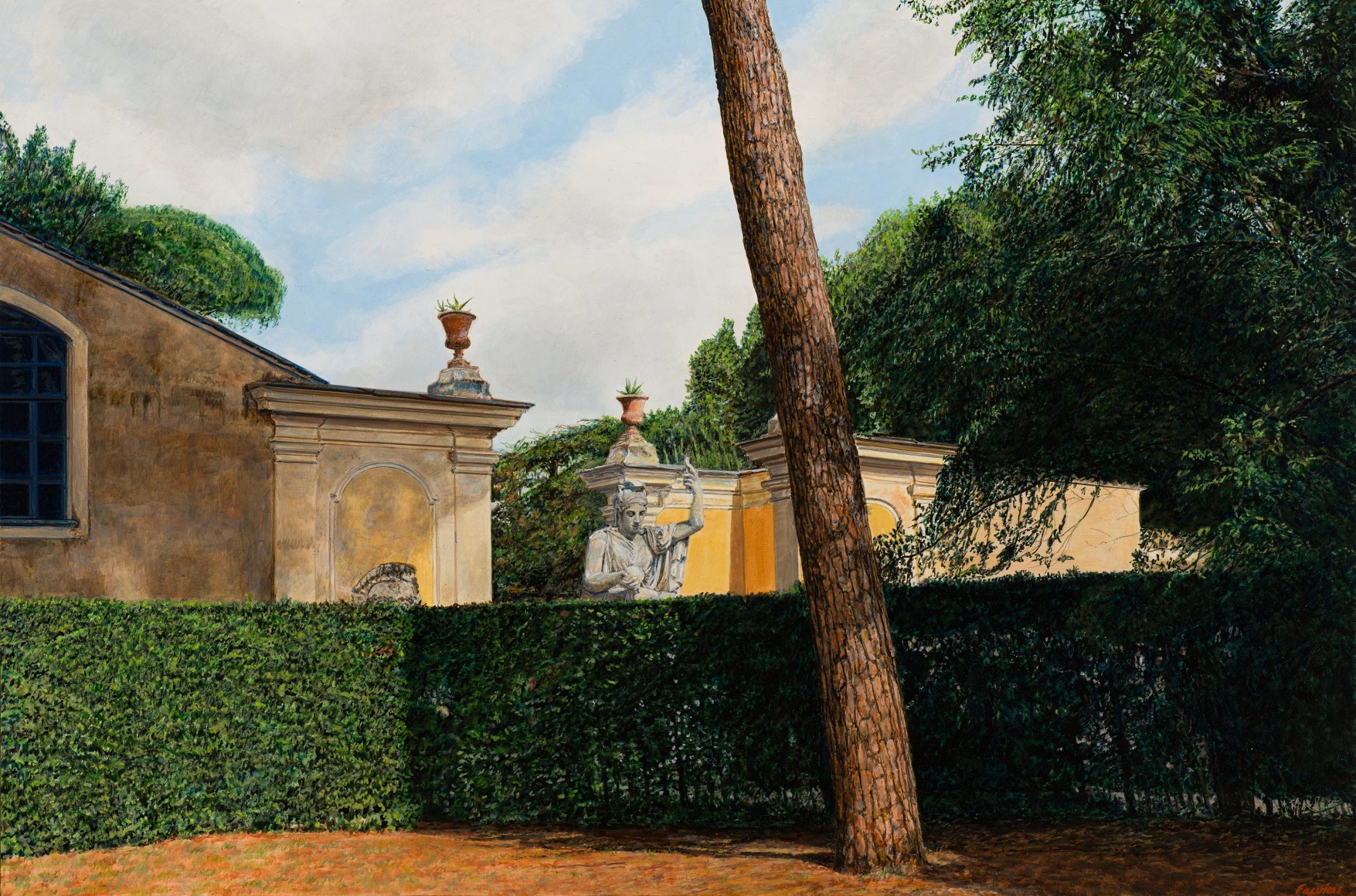 Russo Lee Gallery is pleased to present New Paintings by Tom Fawkes. For this exhibition, Fawkes continues his pursuit of painting classical Italian Renaissance gardens and landscapes. The exhibition also features three-dimensional painted constructions of doors and passageways with rich views of historical architecture and sculptural objects. Fawkes pulls the viewer into the scenes he paints, capturing the smallest details of the garden spaces, or the luscious textural qualities of Roman interiors.