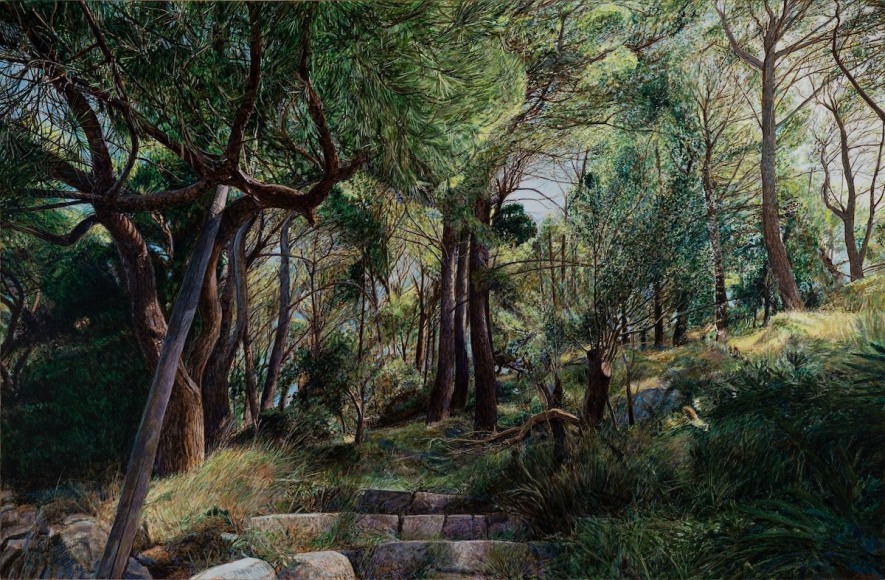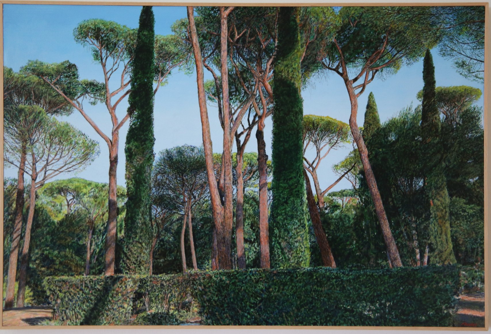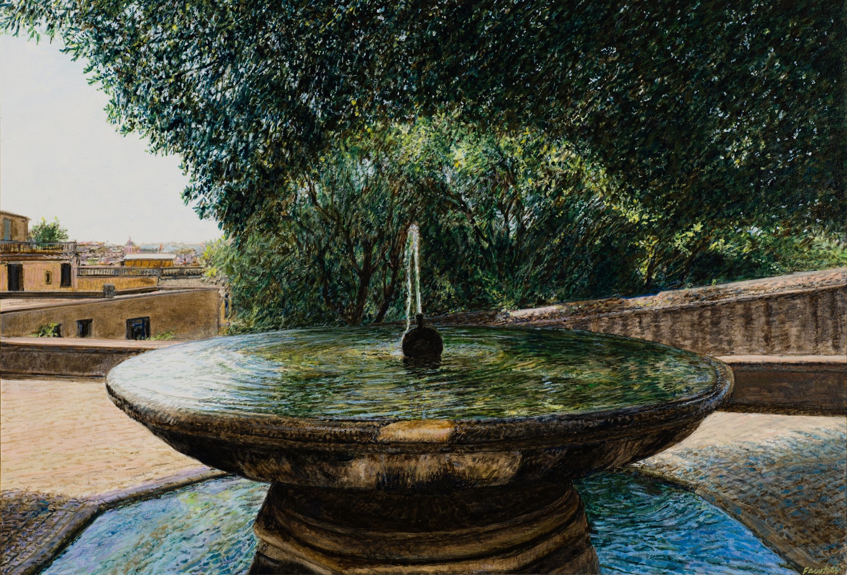 Russo Lee Gallery is pleased to present New Paintings by Tom Fawkes. For this exhibition, Fawkes continues his pursuit of painting classical Italian Renaissance gardens and landscapes. The exhibition also features three-dimensional painted constructions of doors and passageways with rich views of historical architecture and sculptural objects. Fawkes pulls the viewer into the scenes he paints, capturing the smallest details of the garden spaces, or the luscious textural qualities of Roman interiors.