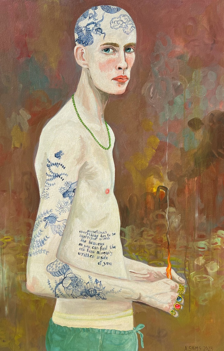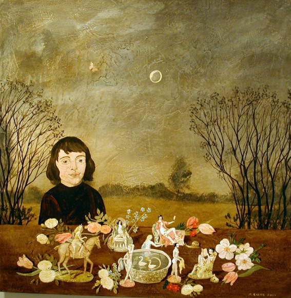 Anne Siems was born in Germany and received her MFA in 1991 from Hochschule der Kunste in Berlin. Her work shows a fascination with nature and the mystery of human experience. Figures are delicately rendered and embraced by flora and fauna, yet placed in ambiguous settings of time and space. Siems has exhibited in the United States since the mid-1980s, at galleries in Chicago, New York, Los Angeles, San Francisco, and Seattle. Her work is included in the collections of the Arkansas Art Center in Little Rock, the Boise Art Museum, the Tacoma Art Museum, Microsoft, University Hospital in Seattle and University of Washington, among others.