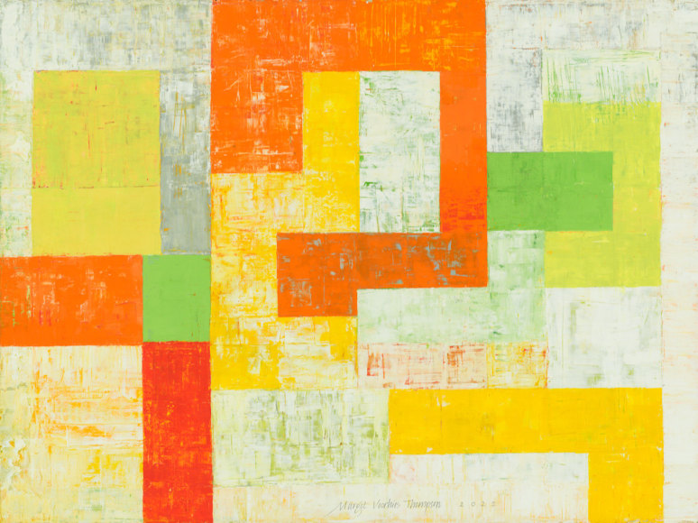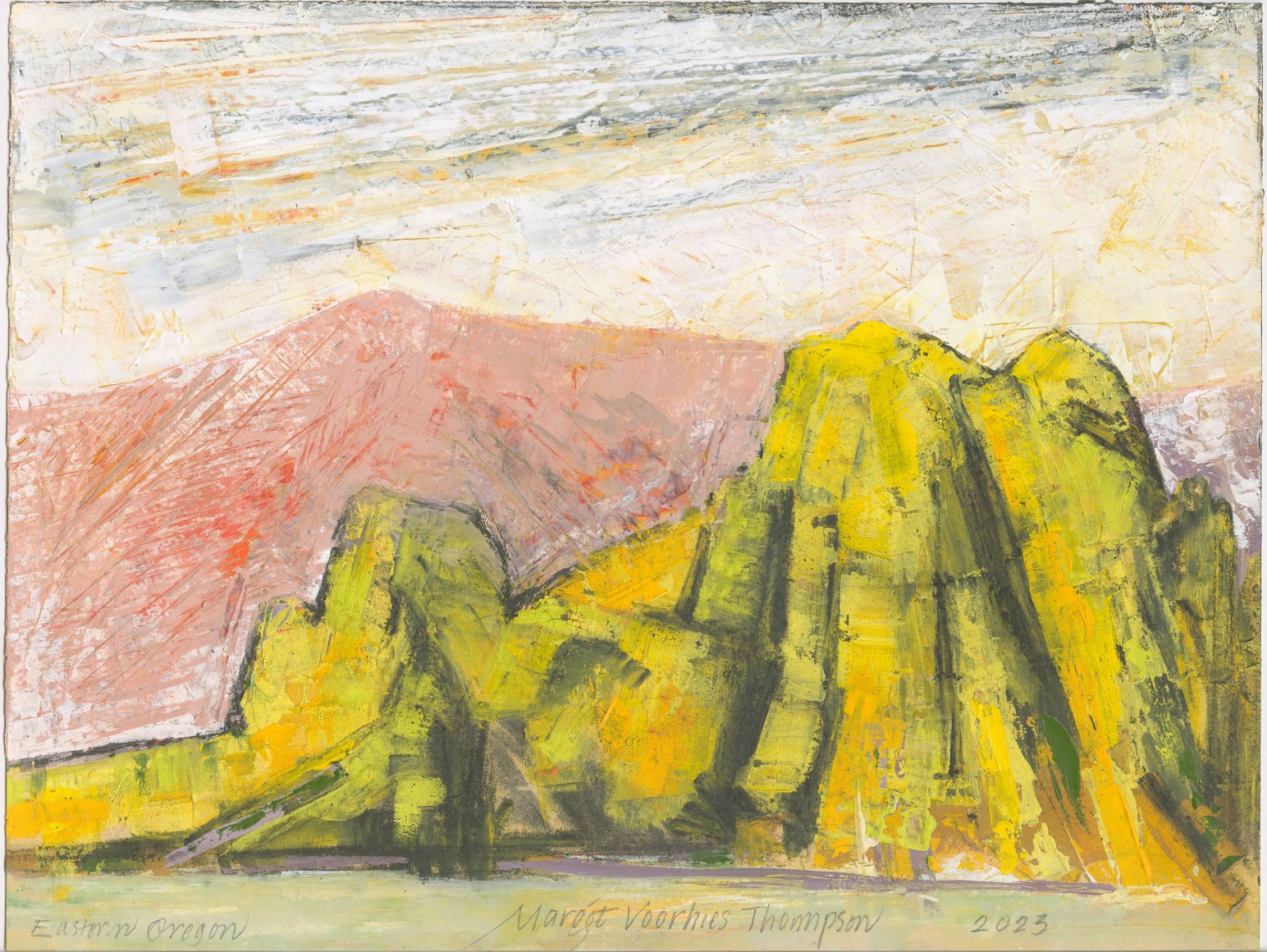 A Portland native, Margot Voorhies Thompson studied at Lewis and Clark College, Reed College, the Pacific Northwest College of Art, and at the Hochschule Fur Kunsterlische in Linz, Austria. Her work is in the collections of: the Portland Art Museum; the Brooklyn Art Museum; the Stanford University Hospital; and the Printmaking Workshop in New York, among others. She has completed several collaborative book commissions with Kim Stafford, Pattian Rogers, and Wendell Berry for the University of Oregon’s Knight Library Press. Other commissions include pieces for Oregon University of Health and Sciences, Portland; Portland State University; Kaiser Permanente, Tualatin, OR; the Woodstock Branch Multnomah County Library, Doernbecher Children’s Hospital, both in Portland, and Oregon State Hospital in Salem, OR.