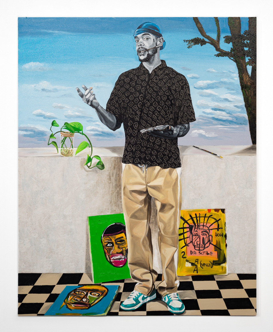 Otis Kwame Kye Quaicoe (b.1988, Accra, Ghana; based in Portland, OR) was born in Greater Accra Region, Ghana. He attended the Ghanatta College of Art & Design for Fine Art with a focus on painting. His work is in the collections of the Los Angeles County Museum of Art, Los Angeles, CA; Smithsonian American Art Museum, Washington, DC; Hirshhorn Museum, Washington, DC; Portland Art Museum, Portland, OR; High Museum of Art, Atlanta, GA; Institute of Contemporary Art, Miami, FL and the Fogg Museum at Harvard, Cambridge, MA. Recent solo exhibitions include Otis Quaicoe: (s)kin deep, Portland Museum of Art, Portland, OR; BLACK RODEO: Cowboys of the 21st Century, Almine Rech, Brussels, Belgium; Otis Kwame Kye Quaicoe: 2021 Artist in Residence, Rubell Museum, Miami, Florida, and ONE BUT TWO (Haadzii), Roberts Projects, Los Angeles, CA. Select group exhibitions include Accra! The Rise of a Global Art Community, Columbus Museum of Art, Columbus, OH; When We See Us, Zeitz Museum of Contemporary Art Africa, Cape Town, South Africa; Outriders: Legacy of the Black Cowboy, Harwood Museum of Art, Taos, NM; Black American Portraits, Los Angeles County Museum of Art, Los Angeles, CA; BLACK BODIES, WHITE SPACES: INVISIBILITY & HYPERVISIBILITY, Green Family Art Foundation, Dallas, TX; Ontology, Ross & Kramer, New York, NY; The Show Will Go On, Nassima Landau, Tel Aviv, Israel; Life in Flowers, Luce Gallery, Turin, Italy, and Salon de Peinture, Almine Rech, New York, NY, among others.