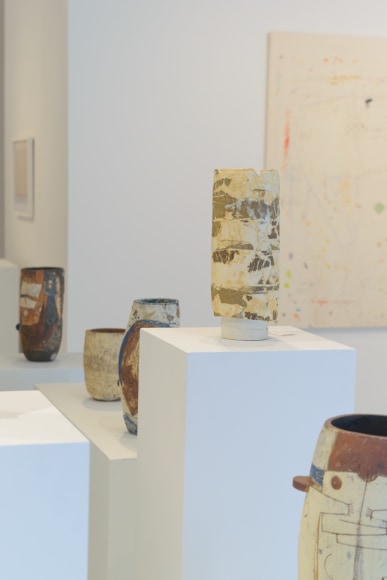 Russo Lee Gallery is pleased to present quiddity by Gina Wilson. This exhibition is an intimate exploration of form and feeling. Each piece in this new body of work stands as a journey, a narrative of self where Wilson searches for beauty across dimensions both seen and felt. A true polymath, Wilson “wears many hats,” weaving aesthetic, physical, spiritual, intellectual, emotional, and even mathematical threads into her works. Comprised of several mediums including ceramics, works on paper, works on panel, and mixed media on fabric, her pieces are more than static objects—they are living dialogues between artist and material.