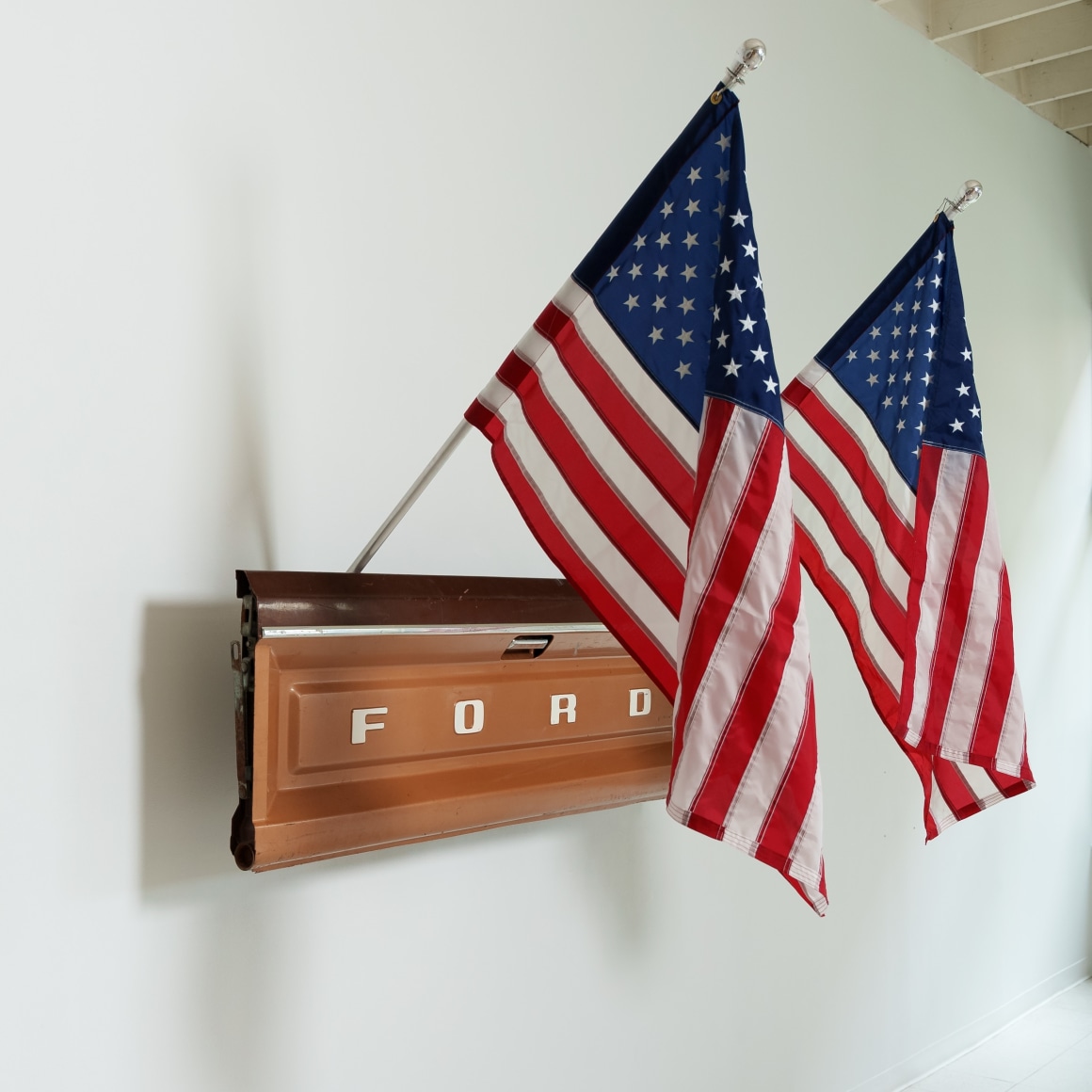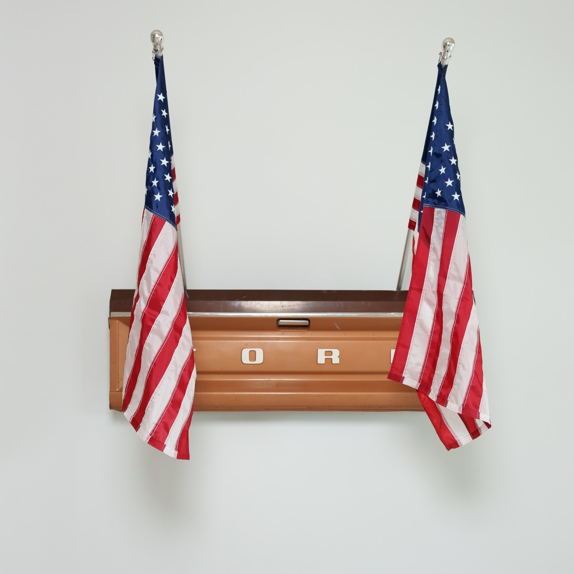 “Under the Flag” is on display at Portland’s Russo Lee Gallery and runs through Aug. 27. The exhibition is by Oregon artist Julian Gaines. It forces the viewer to physically lift an American flag to reveal the work behind it.