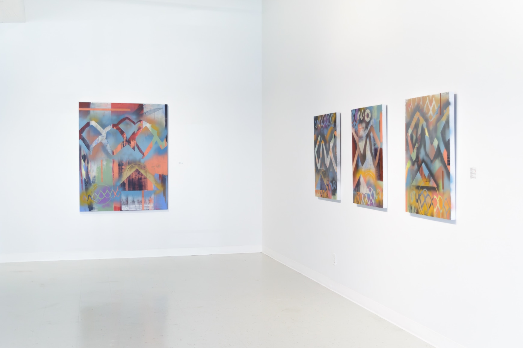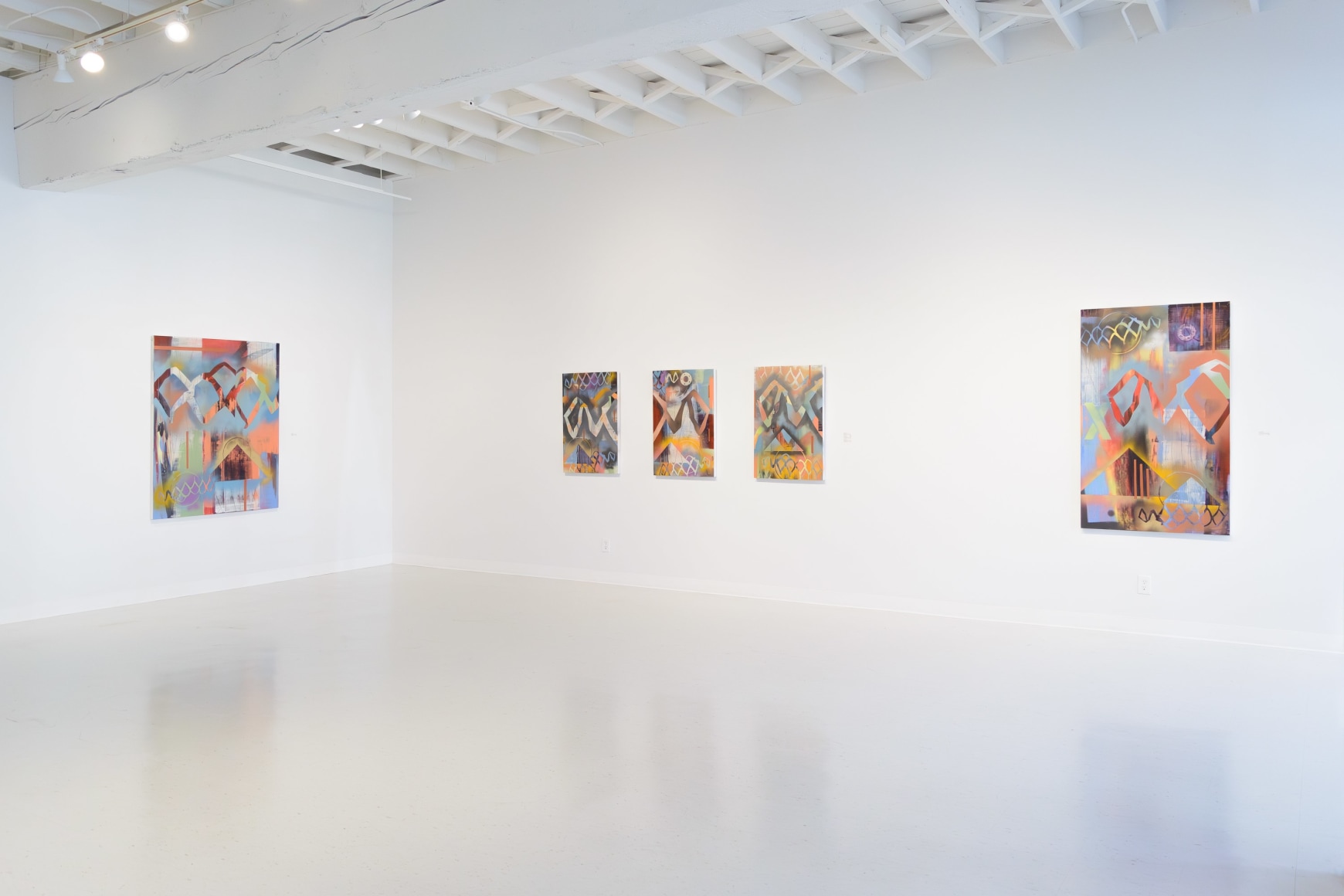 Russo Lee Gallery is pleased to exhibit Portal Glyph by Ka’ila Farrell-Smith. This latest body of work presents a vibrant and daringly hopeful vision of alternate realities rooted in ancestral memory and earth’s material traces. Comprising nine new paintings and two monoprint series created during her 2024 residency at Crow’s Shadow Institute of the Arts, Farrell-Smith fuses abstraction with petroglyphic imagery and rare earth symbolism. Using found stencils from the Umatilla Reservation and naming each work after periodic elements, she conjures portals that challenge colonial temporality and invite viewers into multitemporal landscapes shaped by copper, color, and form. Her work blurs the boundary between past and future, suggesting not extraction or finality, but reverence, reciprocity, and radical imagining. With mountain contours, Pyramid Lake glyphs, and cosmic ibex forms emerging from dusky blues and shimmering metals, Farrell-Smith asks us to see, listen, and step into these energetic openings—to wonder, with the land, where they might take us.