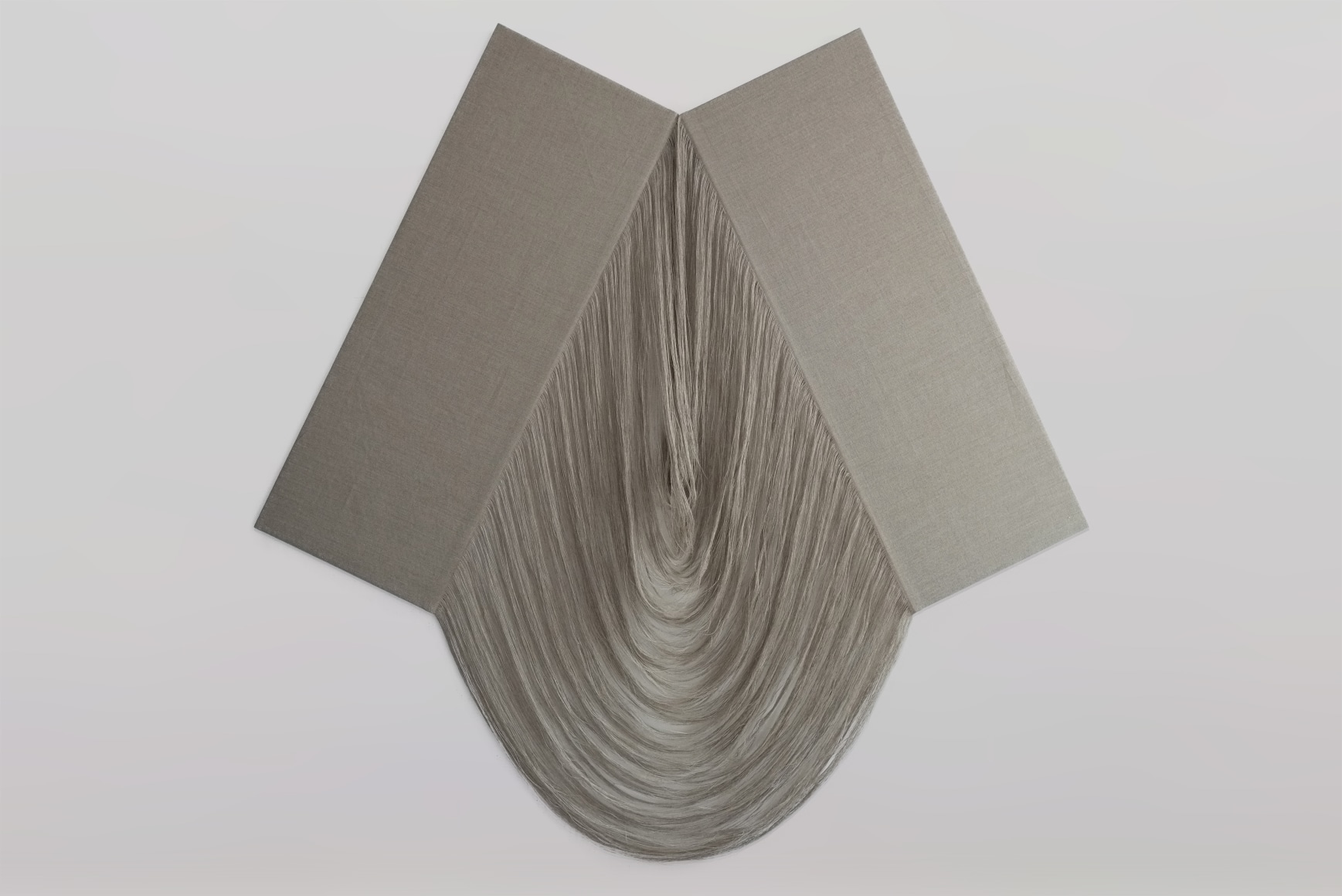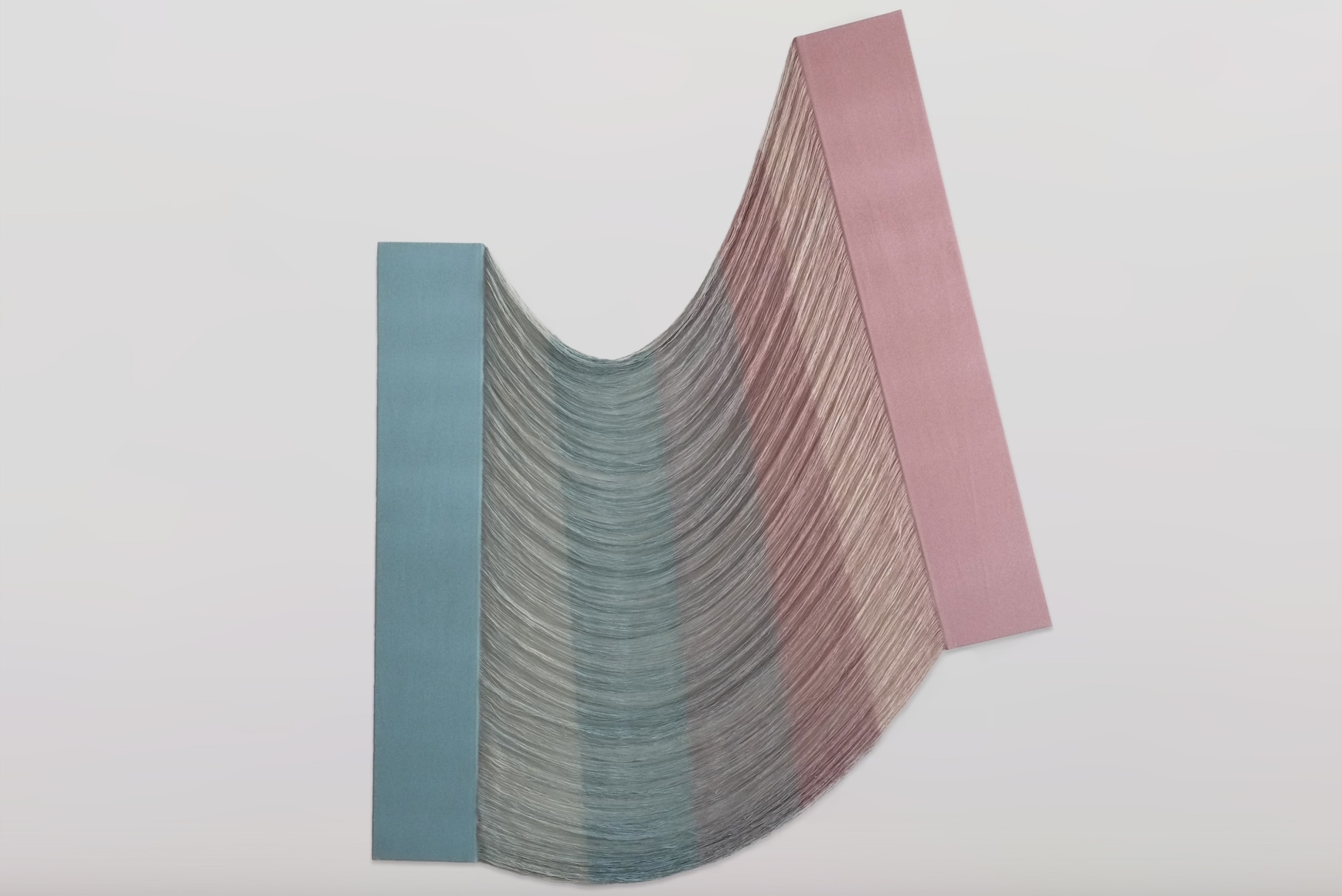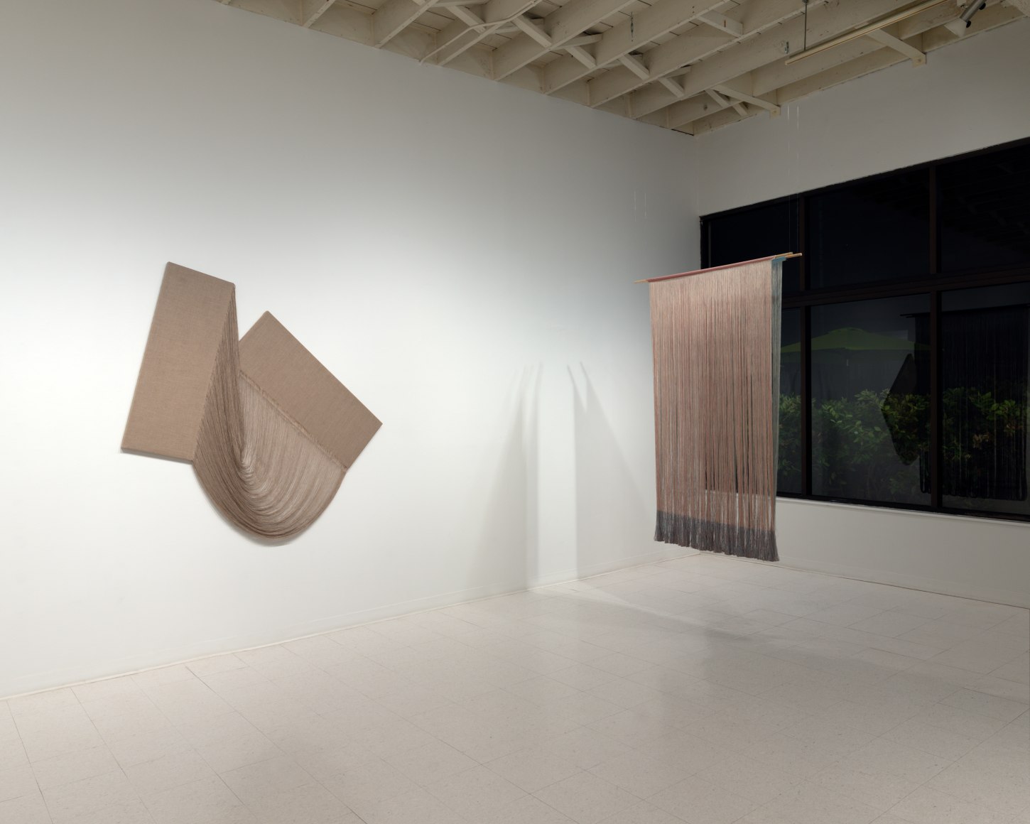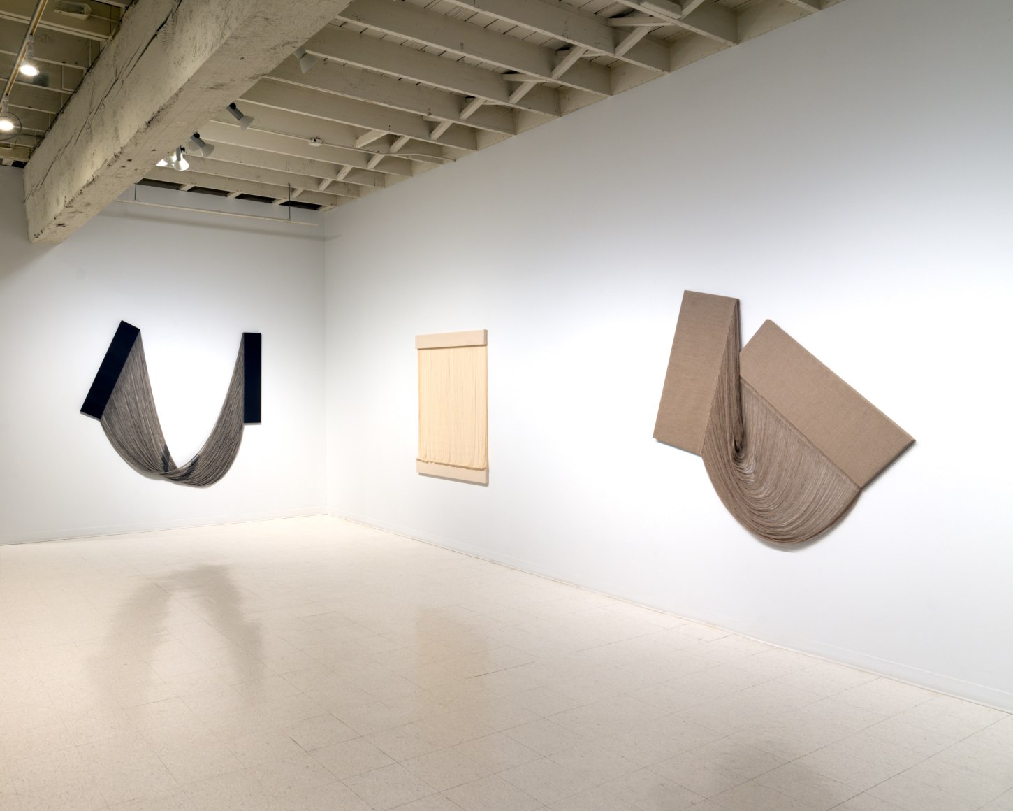 For the month of July, Russo Lee Gallery presents the front to the reverse to what is in between by Ko Kirk Yamahira. Much of Yamahira’s work involves the removal of individual threads from the weave of the canvas. In deconstructing his paintings, he converts surface into form and presents new ways to see and understand classically modern shapes. As the title of the show suggests, Yamahira’s canvases take on embodied form, revealing the original bones of the painting while creating softer, draping forms in between. He states that “existent surfaces are innumerable.”