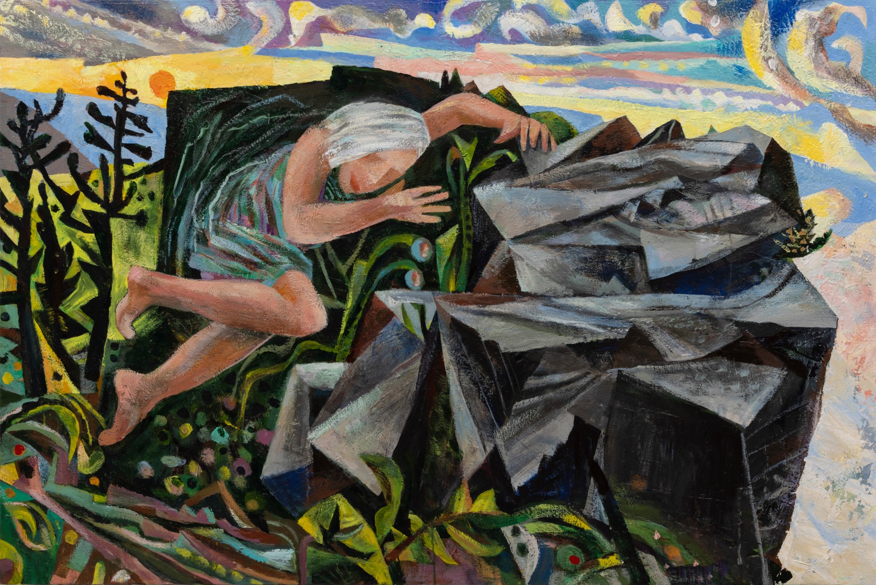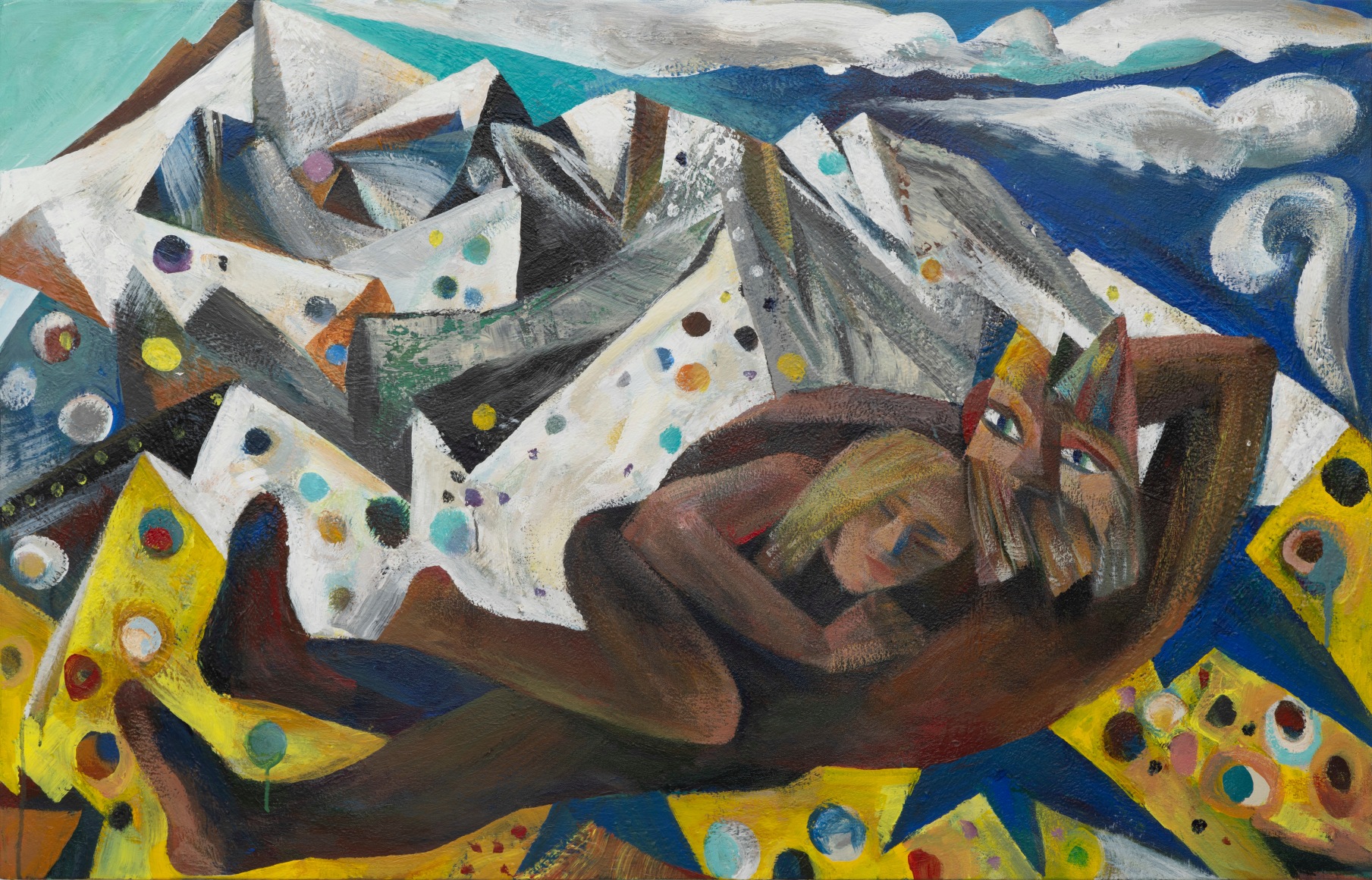 Russo Lee Gallery is pleased to present Good Grief (Redux) by Lucinda Parker. This deeply personal exhibition honors her 53-year marriage to her late husband, Steve. Known for her dynamic compositions and bold treatment of landscape, Parker takes a new step in this exhibition by integrating the human figure into her work, an artistic evolution inspired by profound love and loss. This body of work is an exploration of shared hikes and time spent together in Oregon’s high mountain meadows, particularly along the basalt ridges and snowfields surrounding Mt. Hood. Parker’s signature approach to landscape becomes a vessel for memory, as monumental boulders and sweeping views of the mountain frame the emotional terrain of enduring companionship and grief. “To paint is to love again,” Parker says. “This series is my effort to create a group of paintings about Steve and myself and our life together. Nature provides a surrounding, enduring comfort to my eyes and my heart. Cubism loaded with emotion.” The exhibition, originally scheduled last year, was postponed due to a fire in a neighboring space to the gallery. During this unexpected pause, Parker continued to paint, adding new works to the show that deepen its reflection on resilience, remembrance, and renewal.
