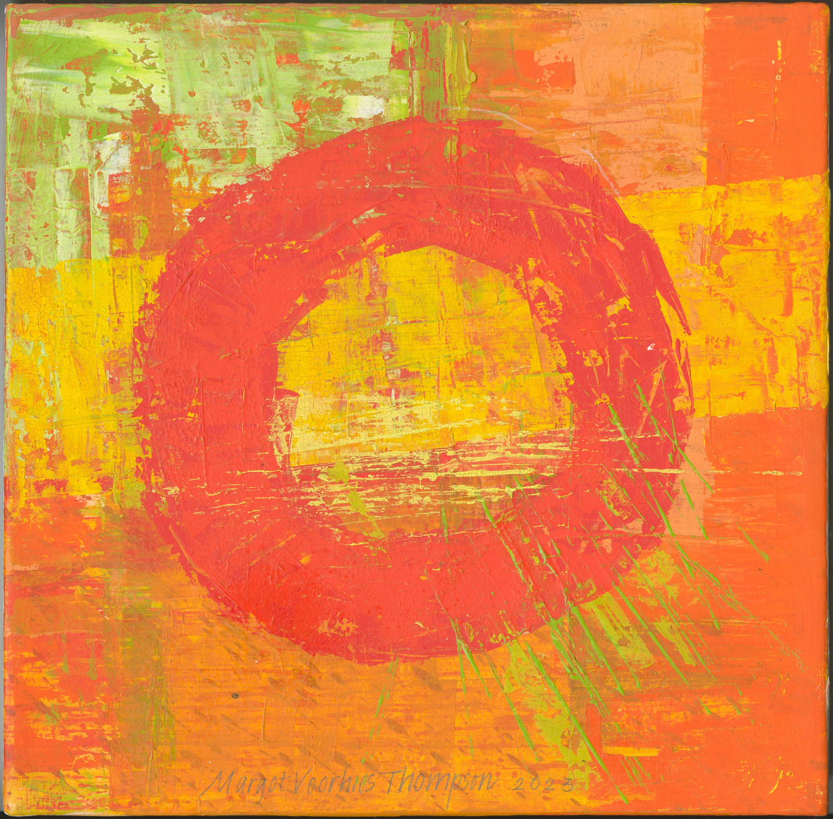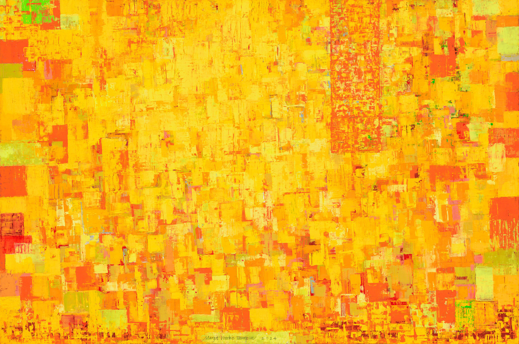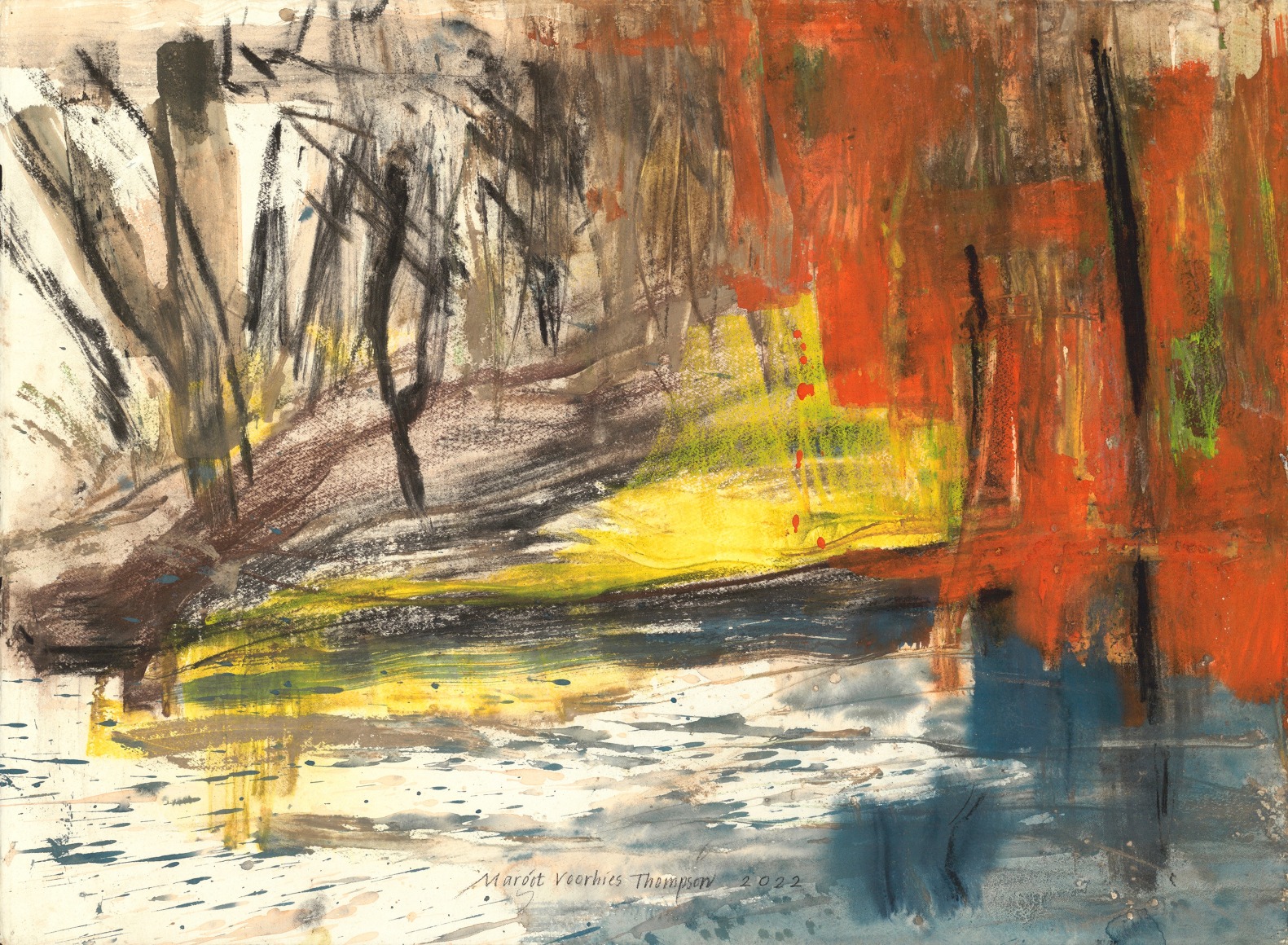 A Portland native, Margot Voorhies Thompson studied at Lewis and Clark College, Reed College, the Pacific Northwest College of Art, and at the Hochschule Für Künsterlische in Linz, Austria. Her work is in the collections of: the Portland Art Museum; the Brooklyn Art Museum; the Stanford University Hospital; and the Printmaking Workshop in New York, among others. She has completed several collaborative book commissions with Kim Stafford, Pattiann Rogers, and Wendell Berry for the University of Oregon’s Knight Library Press. Other commissions include pieces for Oregon University of Health and Sciences, Portland; Portland State University; Kaiser Permanente, Tualatin, OR; the Woodstock Branch Multnomah County Library, Doernbecher Children’s Hospital, both in Portland, and Oregon State Hospital in Salem, OR. Thompson is currently the subject of a film documentary under production about her work and creative process.