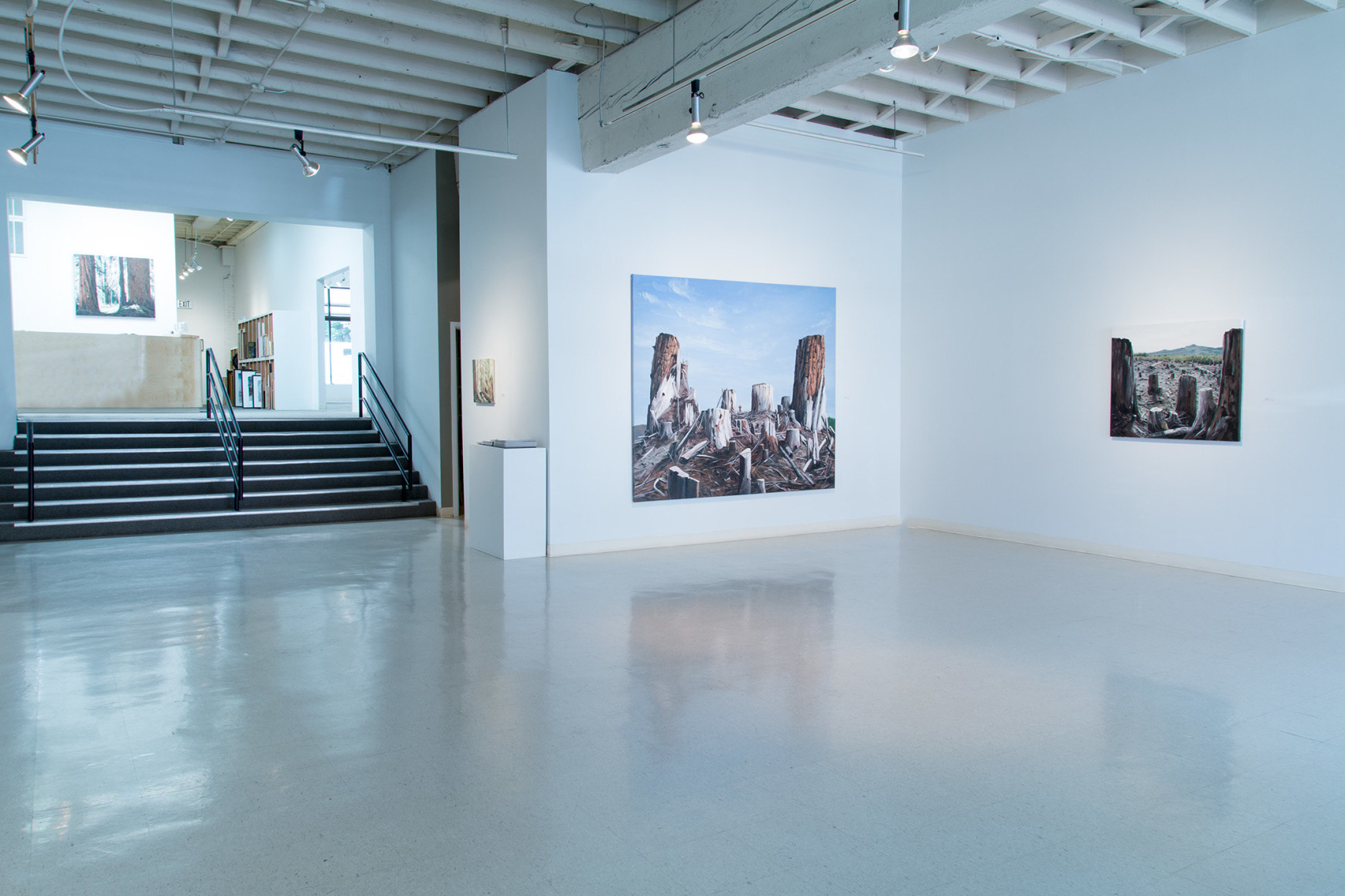 Michael Brophy’s newest exhibition revisits themes he first explored early in his career. Forest and Clearing looks at the Northwest landscape and our human relationship to it, whether in the context of recreation or industrial use: presenting awe and wonder in the midst of beauty or destruction. While this is subject matter he has worked with before, Brophy’s formal interests of more recent years influence the way he looks at and paints a familiar subject. His use of color and light and his organization of space give a nod to the stacked shipping containers, or piled coastal jetties that he has painted in more recent years. This latest work will captivate viewers as they are pulled into the places he paints while simultaneously emphasizing the compelling virtuosity that Brophy has in applying paint to canvas.